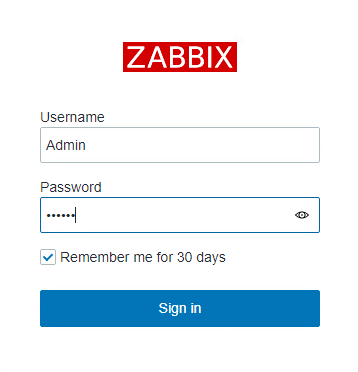 이제 ZABBIX에 로그인할 수 있습니다. 기본 계정과 패스워드는 Admin/zabbix입니다.