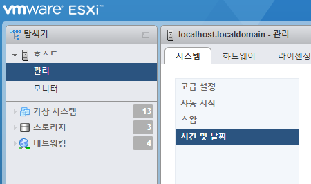 그 다음 호스트 - 관리 - 시스템 - 시간 및 날짜에 들어가 줍니다.