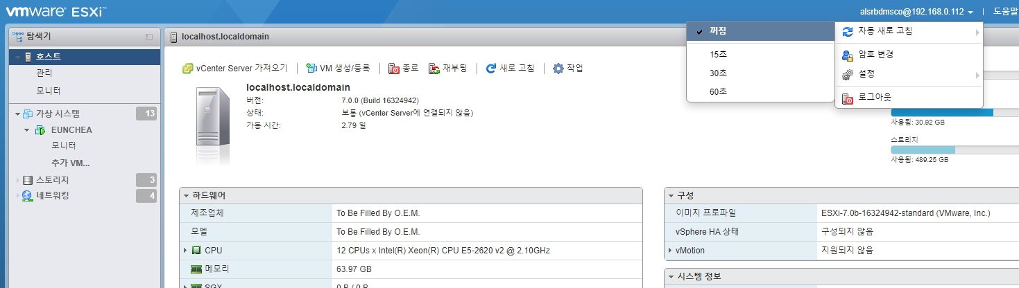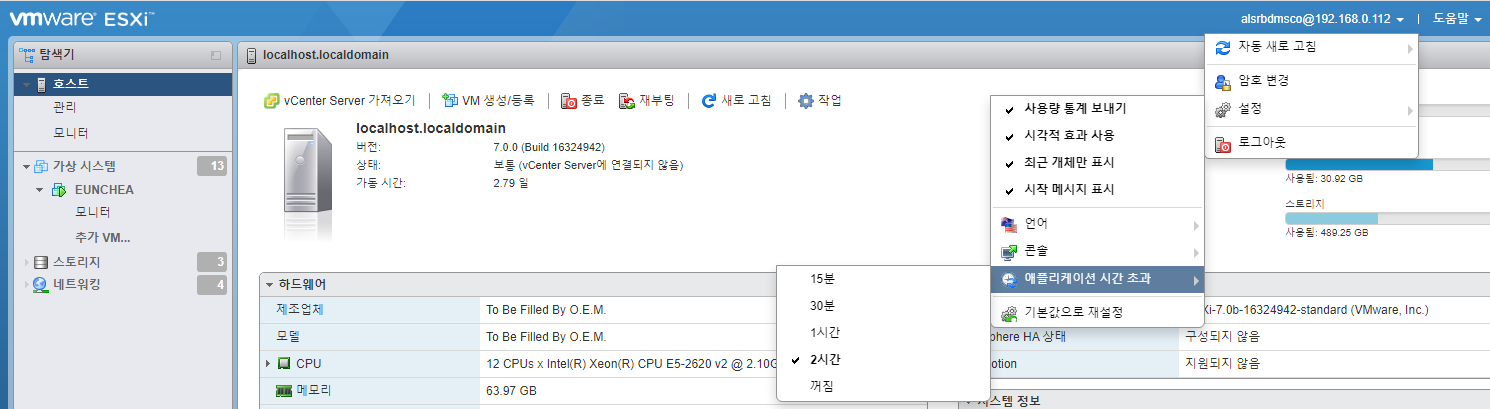 ESXi를 사용하다 보면 미사용 시 자동으로 15분 뒤에 로그아웃이 됩니다.