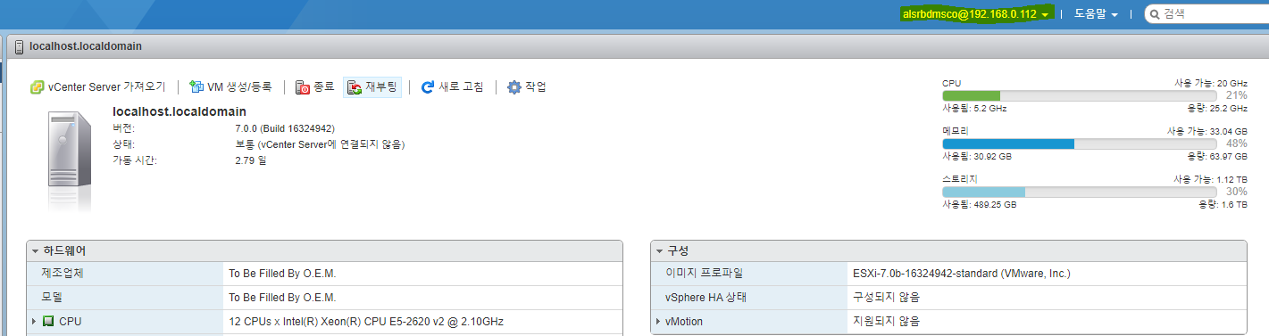 먼저 각자 ESXi 페이지 로그인을 해줍니다.