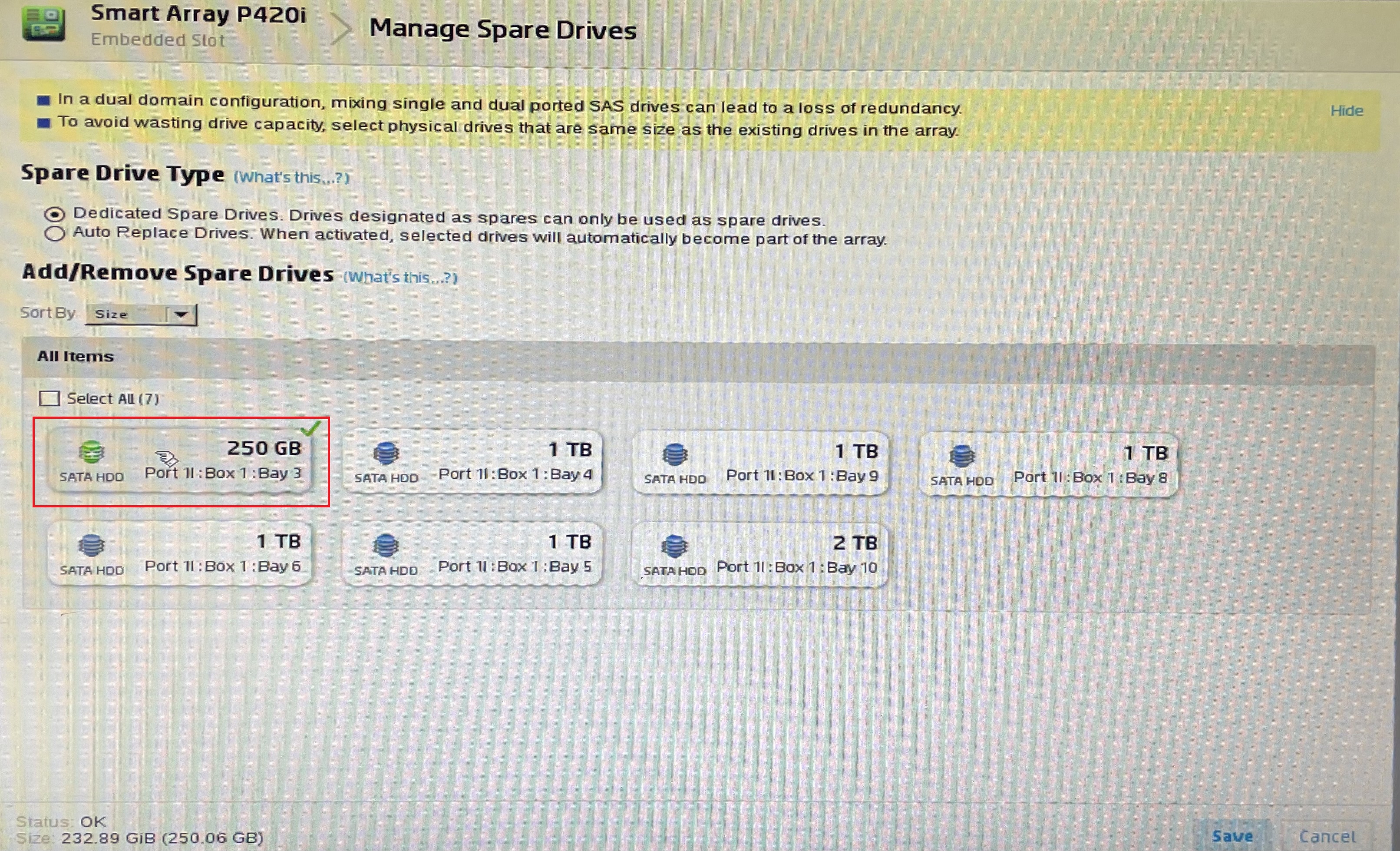 7. 스페어 디스크로 설정한 디스크를 선택 후 Save를 눌러주세요.
