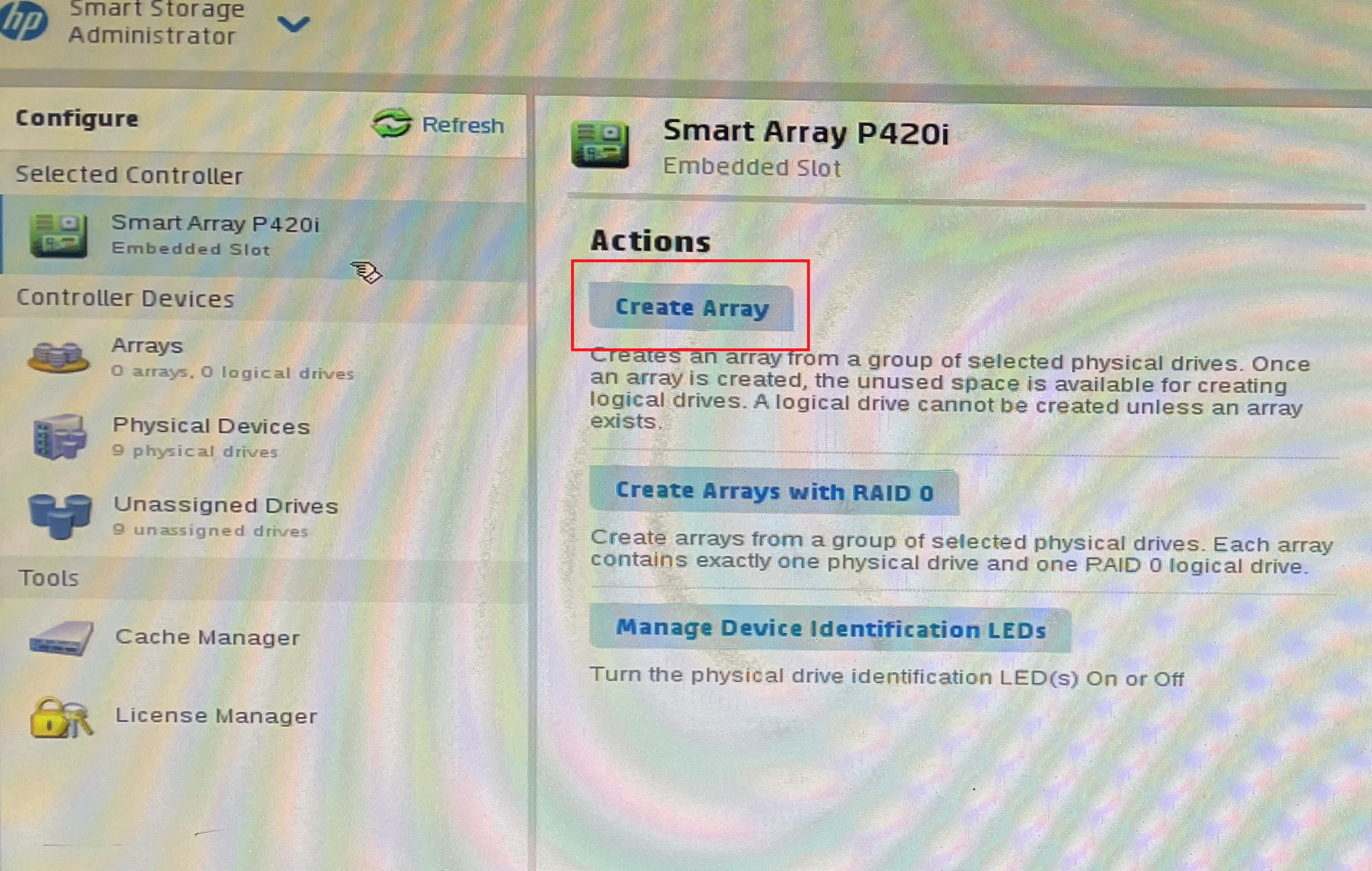 3. 이제 위 사진과 같은 화면에서 Create Array를 눌러주세요.