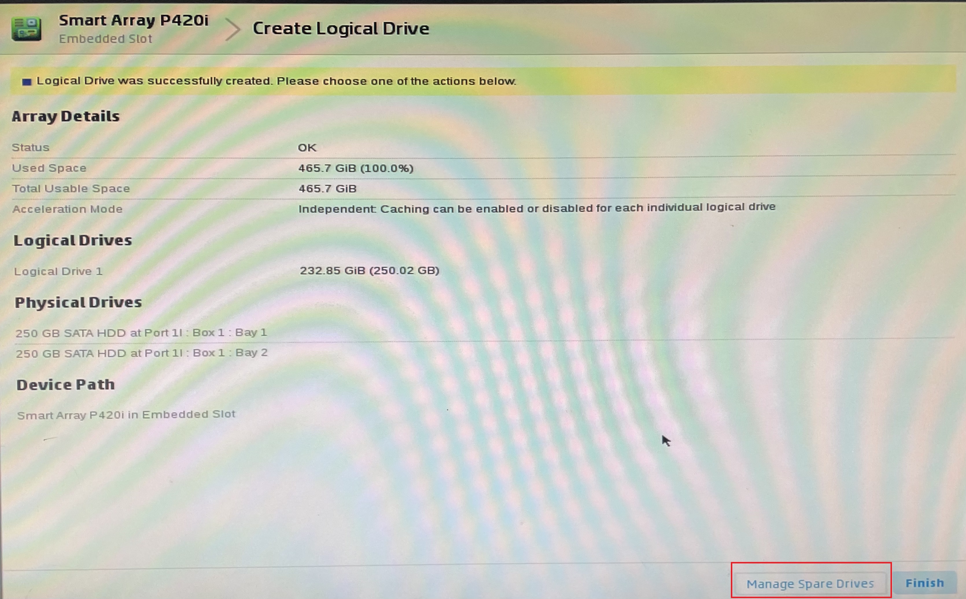 9. RAID 설정이 완료된 것을 볼 수 있습니다.