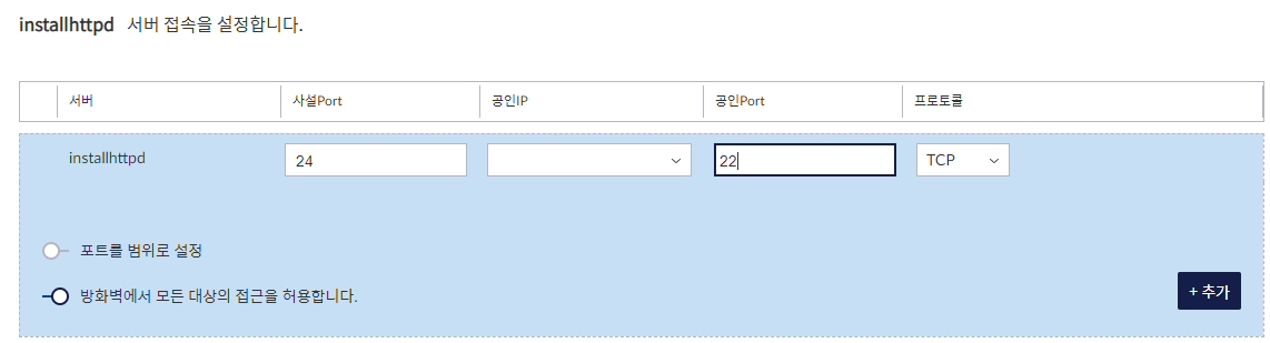 6. installhttpd 서버가 만들어졌습니다. 이제 접속 설정을 하고 SSH로 연결해봅시다.