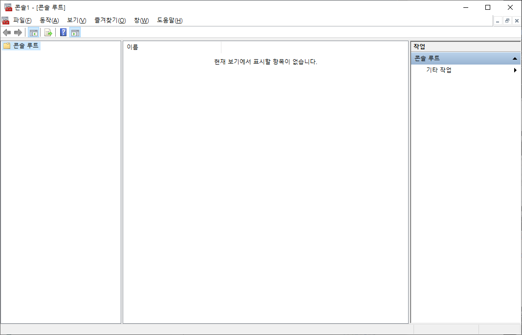 먼저 윈도우 + R 키를 눌러 실행창에 mmc를 입력 후 실행해주세요.