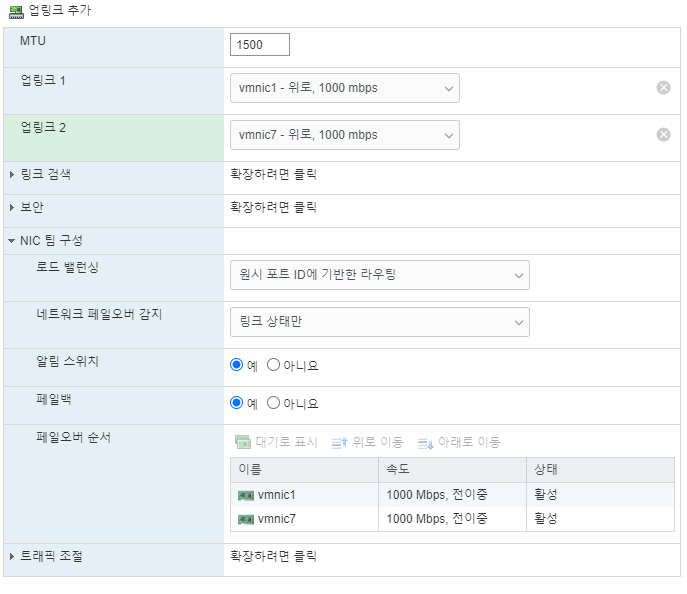 자 오늘은 이렇게 ESXi 업링크 추가 방법에 대해 남겨보았습니다.