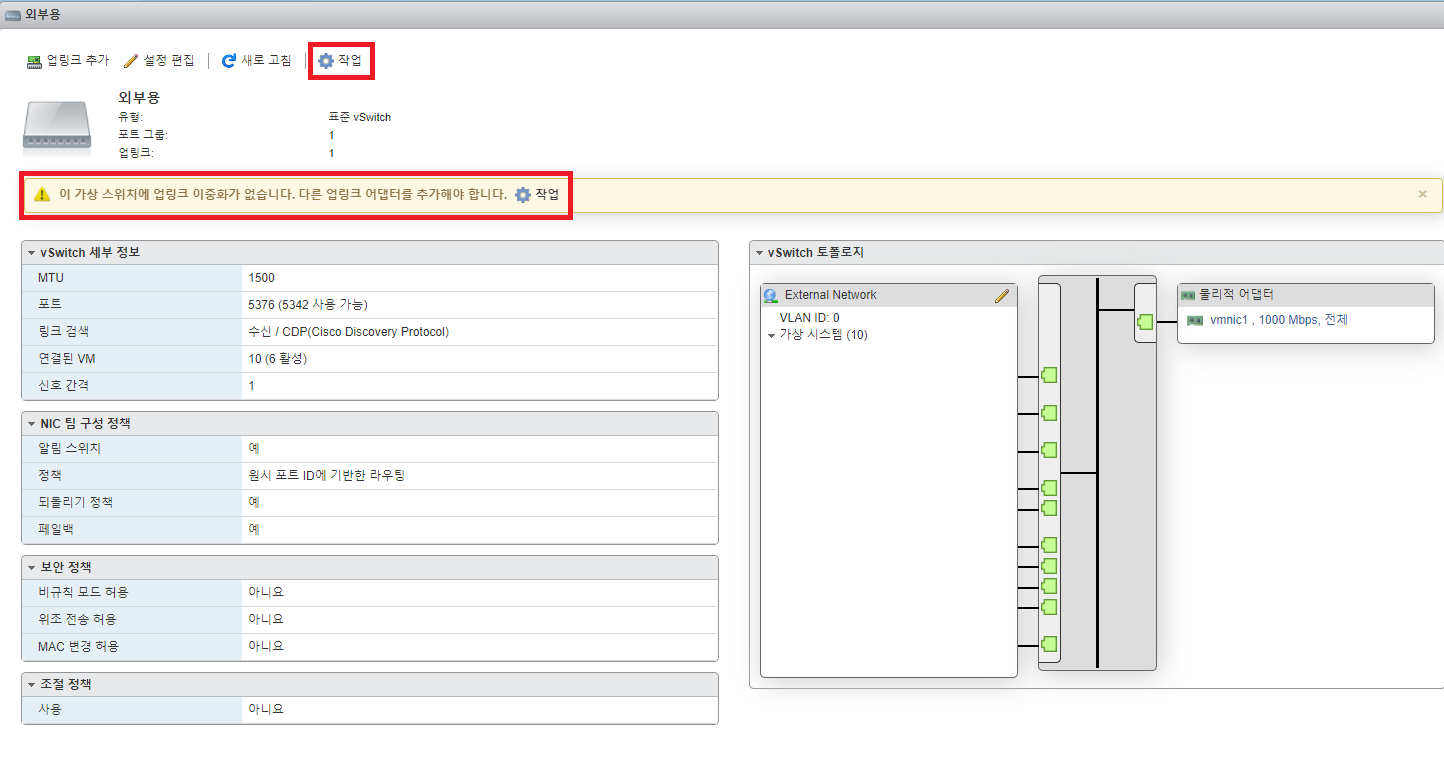 오늘은 ESXi 가상 스위치에 업링크를 추가해보도록 하겠습니다.