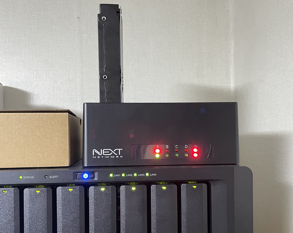 먼저 시놀로지와 도킹스테이션을 eSATA로 연결 후 4TB 하드디스크를 연결해줬습니다.