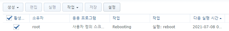시놀로지에는 따로 자동 재부팅되는 설정이 없는 걸로 알고 있습니다. 그래서 간단하게 해결해보겠습니다.