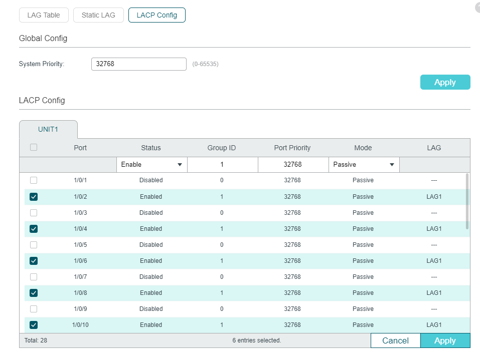 이제 설정 후 LAN 케이블을 연결하게 되면 LAG Table에 이렇게 연결된 것을 볼 수 있습니다.