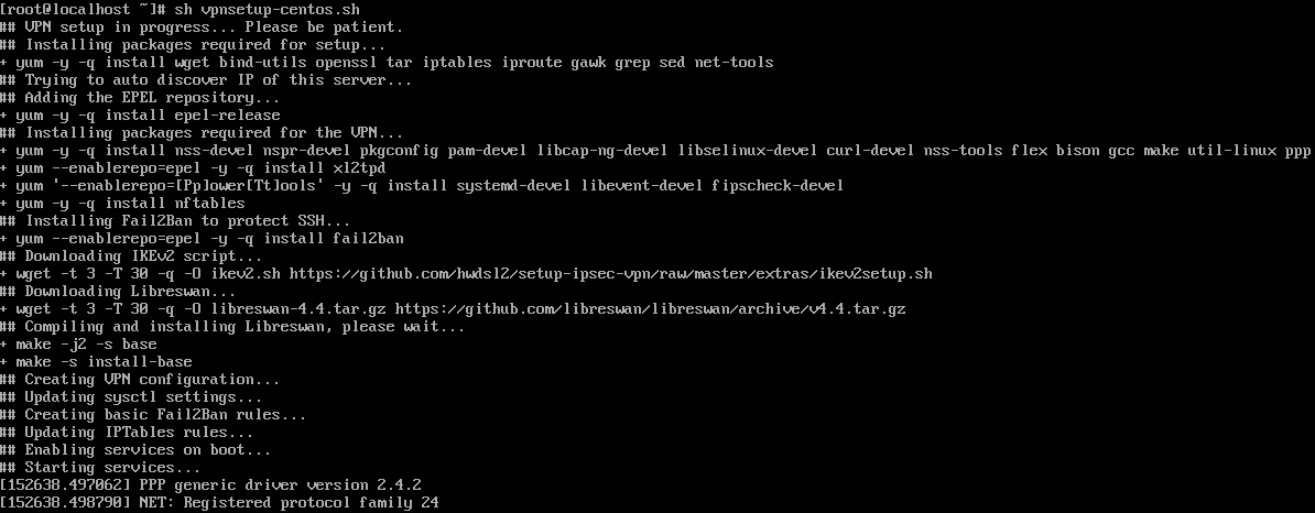 | [root@localhost ~]# sh vpnsetup-centos.sh |