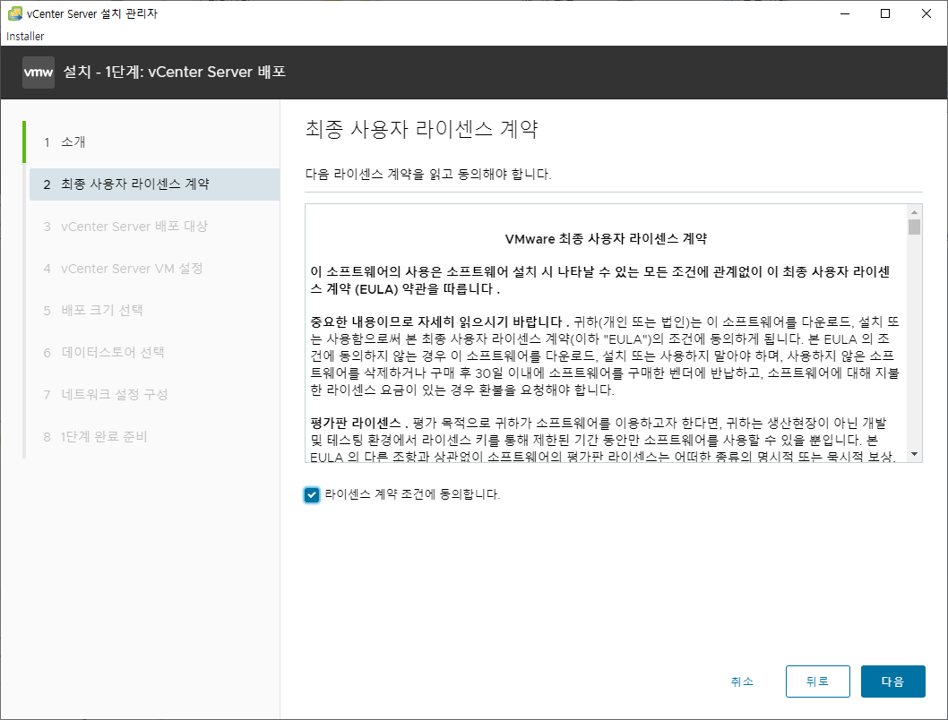 5. 라이선스 계약을 확인하시고 동의하기 박스를 체크 후 넘어가 줍니다.