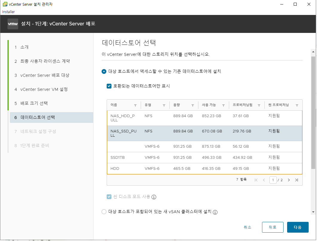 10. 이제 VCSA 설치할 데이터베이스를 선택하는 창이 나옵니다. 선택 후 다음으로 넘어가 주세요.