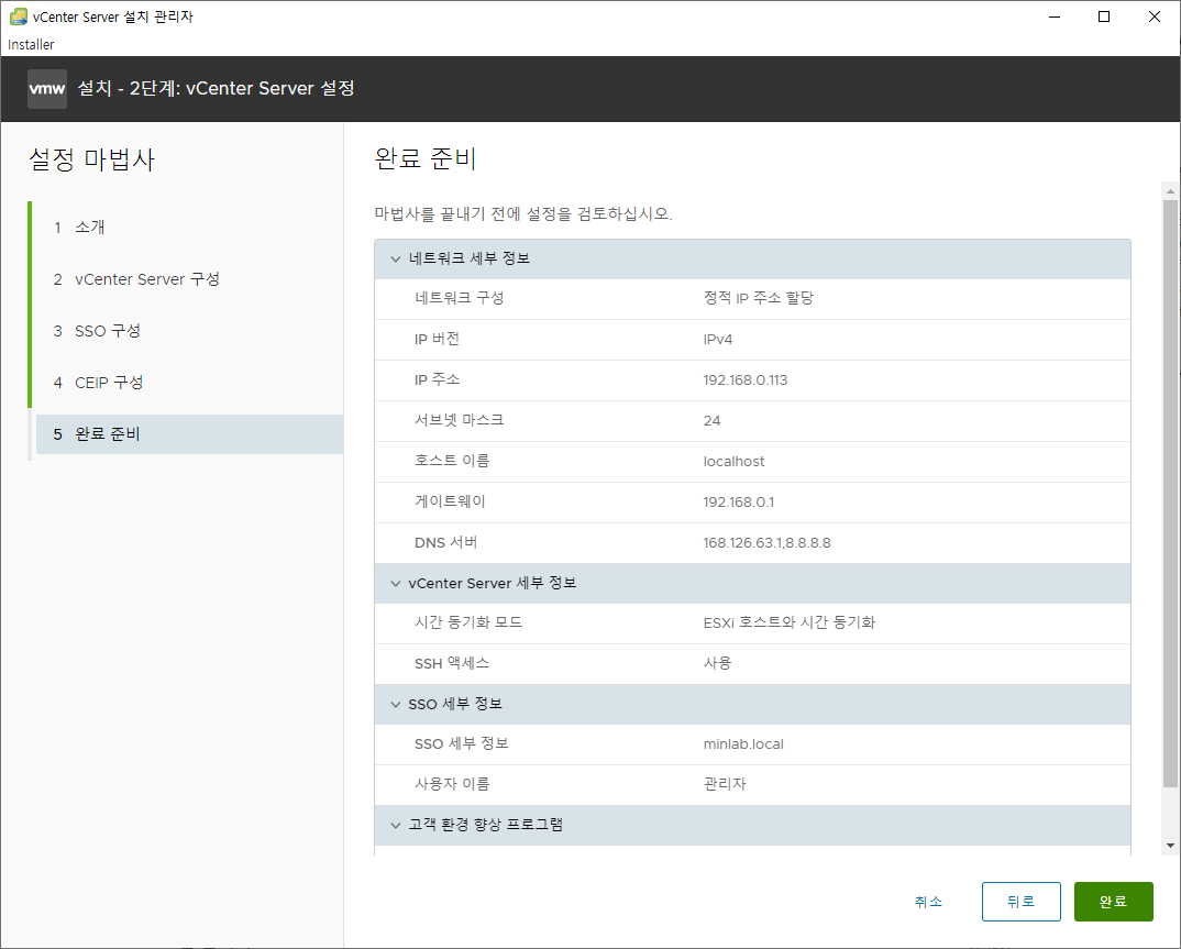 오늘은 이렇게 VCSA 설치 과정에 대해 작성해봤습니다.