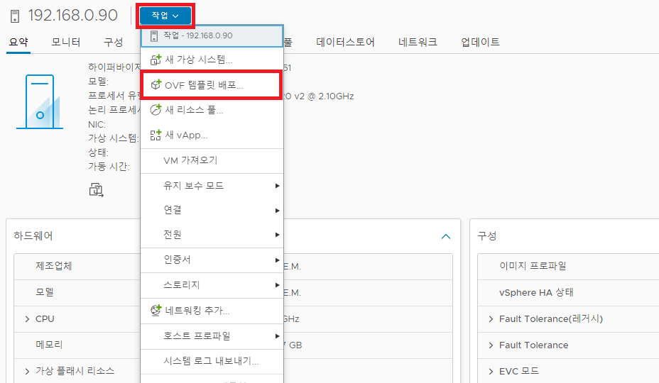 1. 작업 -> OVF 템플릿 배포를 선택해줍니다.