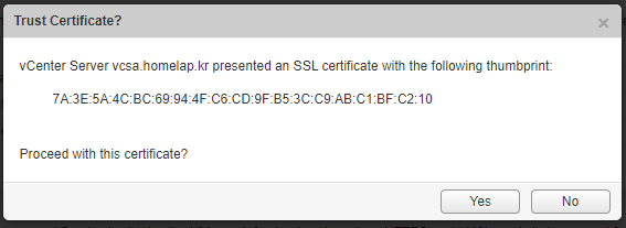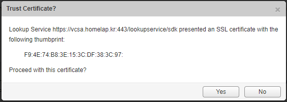 3. 인증서 신뢰 관련 창이 나오는데 YES를 눌러 넘어가 줍니다.