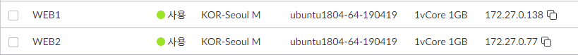 여기에 있는 IP로 접속하게 되면 이제 WEB1, WEB2 서버에 라운드 로빈 방식으로 접속을 하게 됩니다.