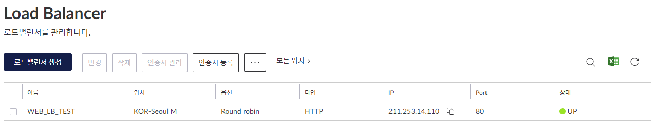 설정이 완료되었으면 생성하기 버튼을 눌러 로드배런서를 실행해주시면 됩니다.