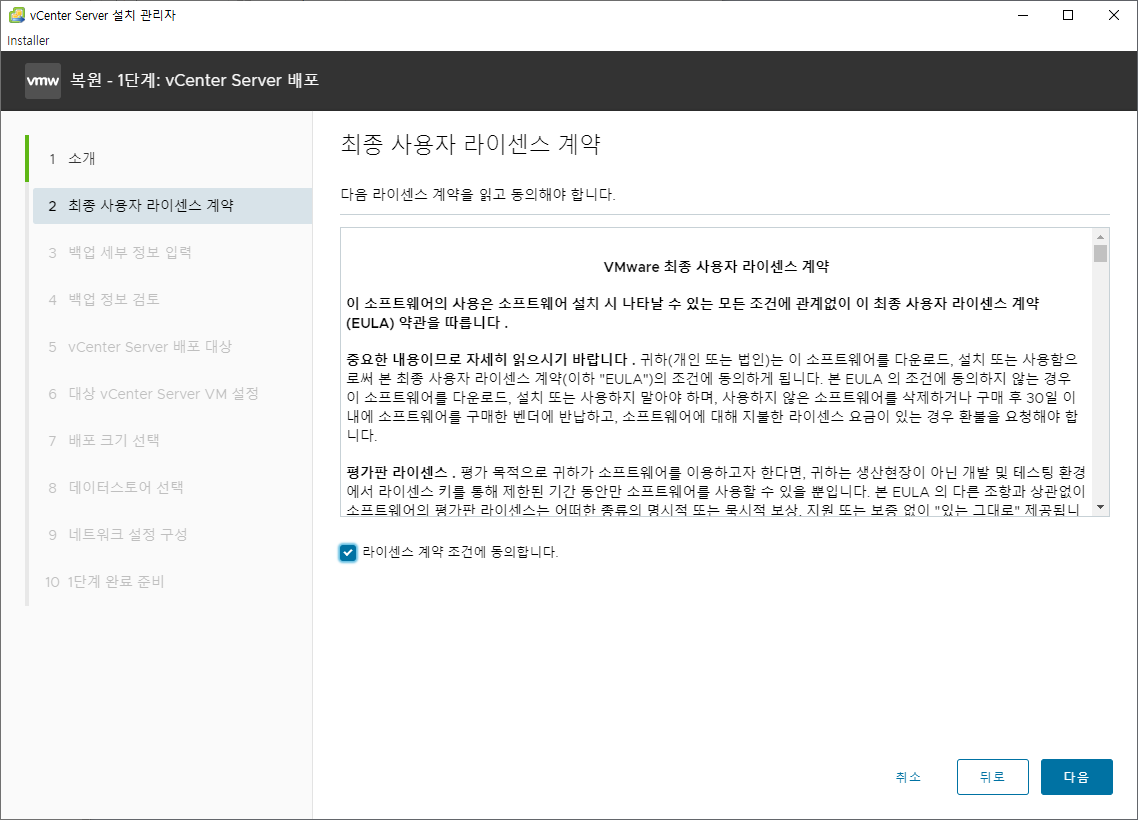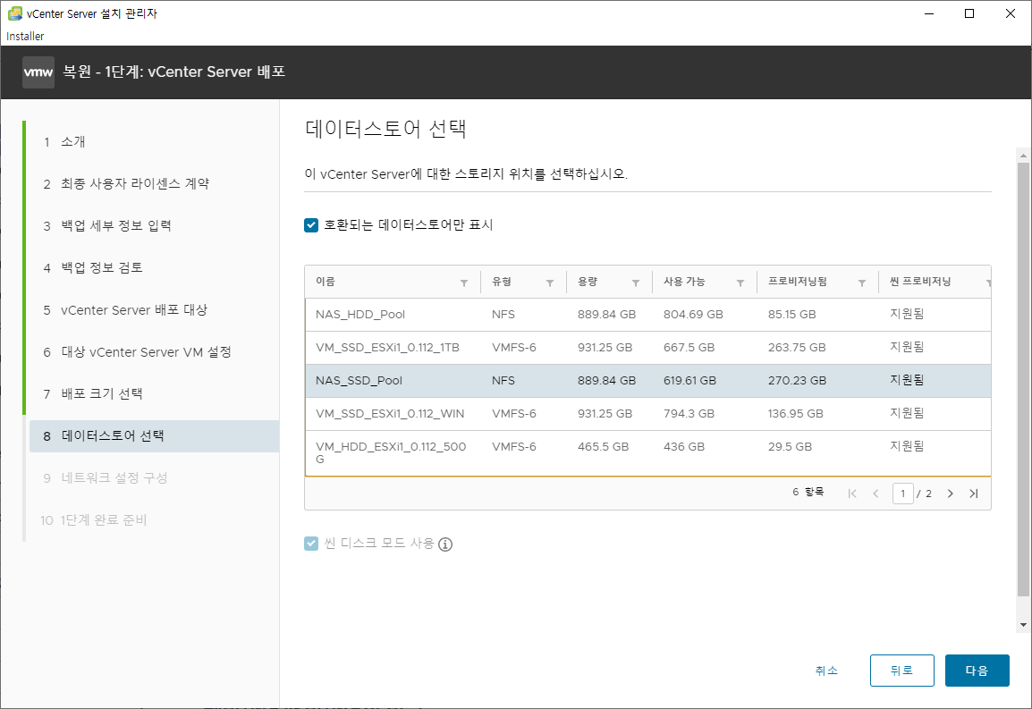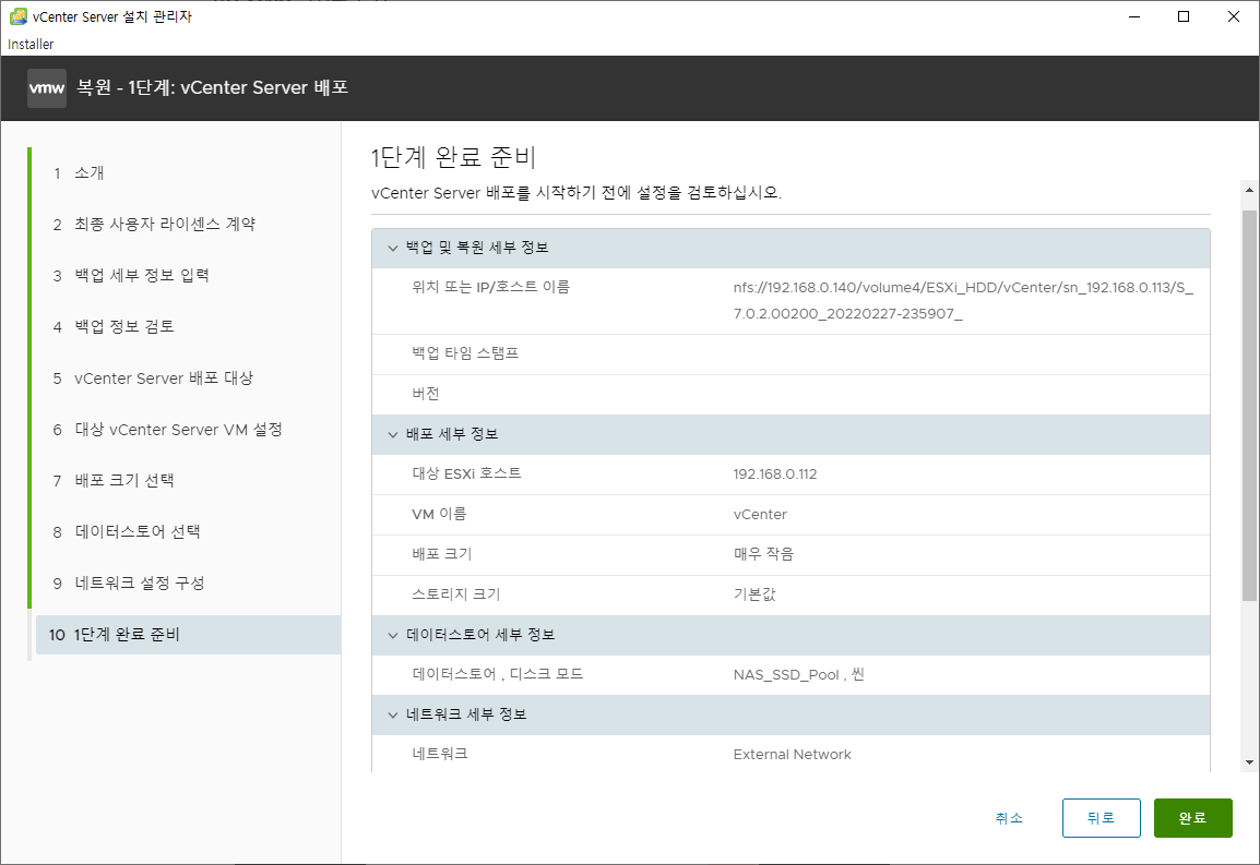 VCSA 설치 과정이랑 많이 다른 부분은 없어 어려움을 없었던 거 같습니다.