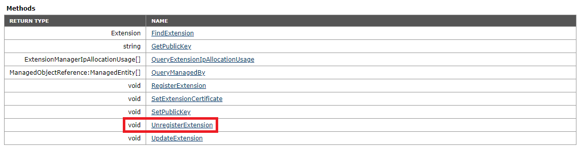 5. 마우스 휠을 아래로 내려 Methods 중 UnregisterExtension을 찾아 눌러줍니다.