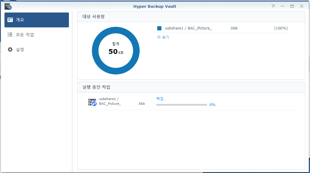 백업 파일을 받는 NAS에 Hyepr Backup Vault를 확인하게 되면 성공적으로 진행되고 있는 모습을 볼 수 있습니다.