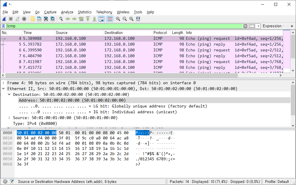 그리고 다시 Wireshark로 캡쳐를 했을 때 정상적으로 작동하는 걸 볼 수 있습니다.