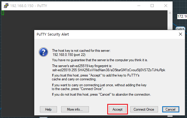 putty나 cmd로 EVE-NG VM에 SSH로 접근하여 키 값을 저장하는 방법입니다.