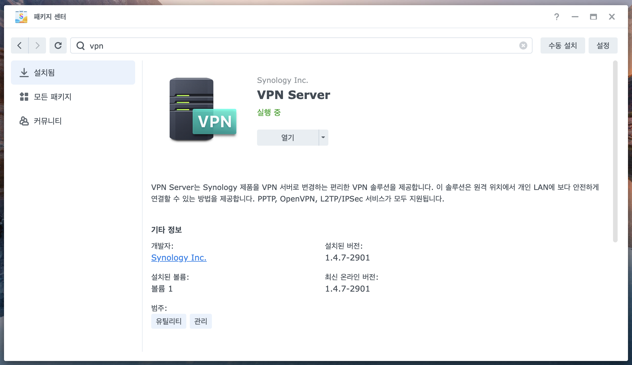 1. VPN Server 패키지를 찾아서 설치해줍니다.