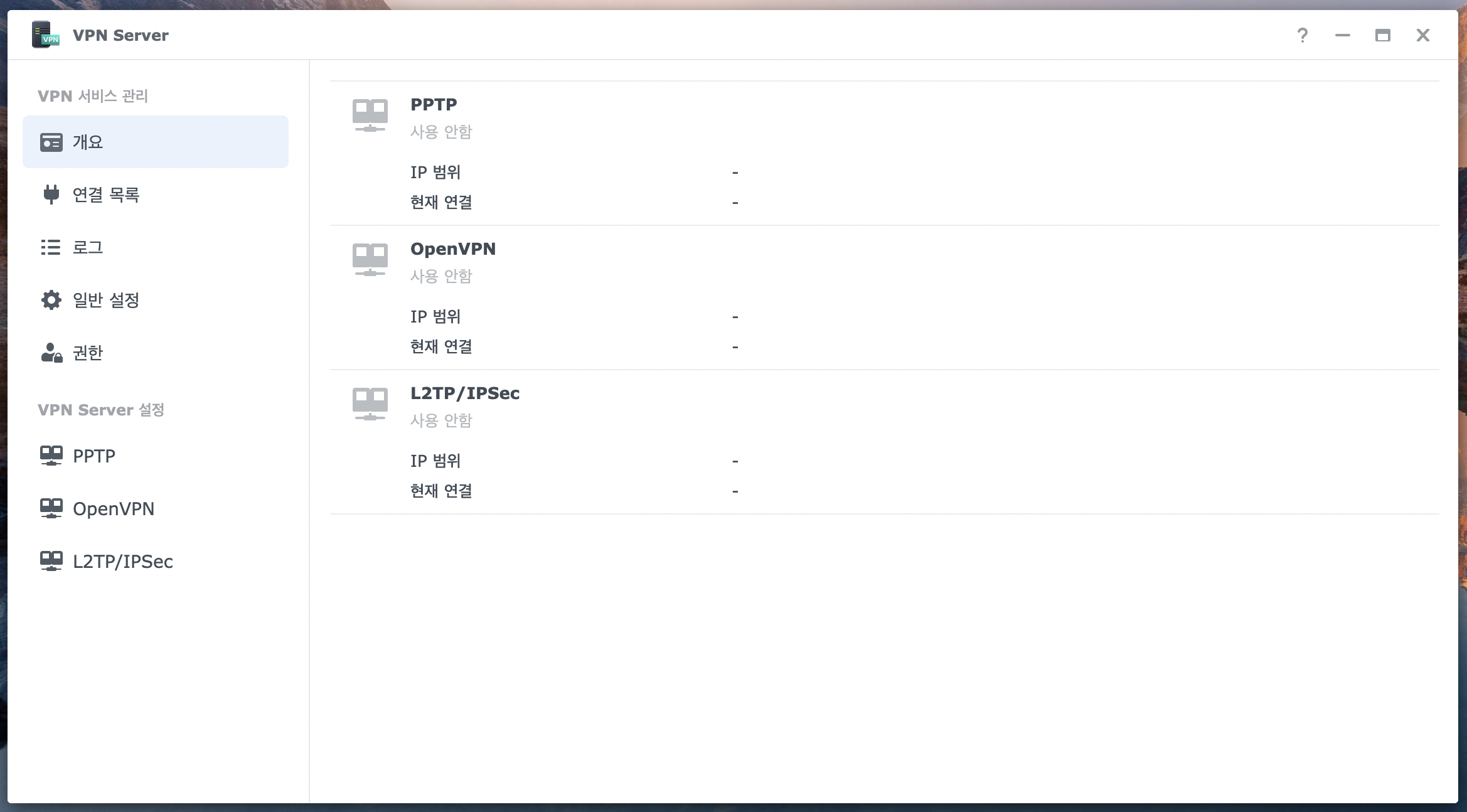 2. 설치 완료 후 들어가면 이제 VPN 설정이 가능합니다.
