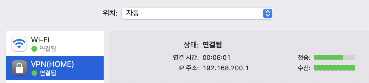 맥북에서 VPN에 연결이 정상적으로 되면서 VPN 구축을 마치겠습니다.