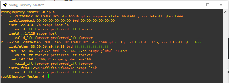 여기까지 설정을 마치고 IP를 보게 되면 Haproxy_Master에 192.168.1.200 VIP가 추가된 걸 볼 수 있습니다.