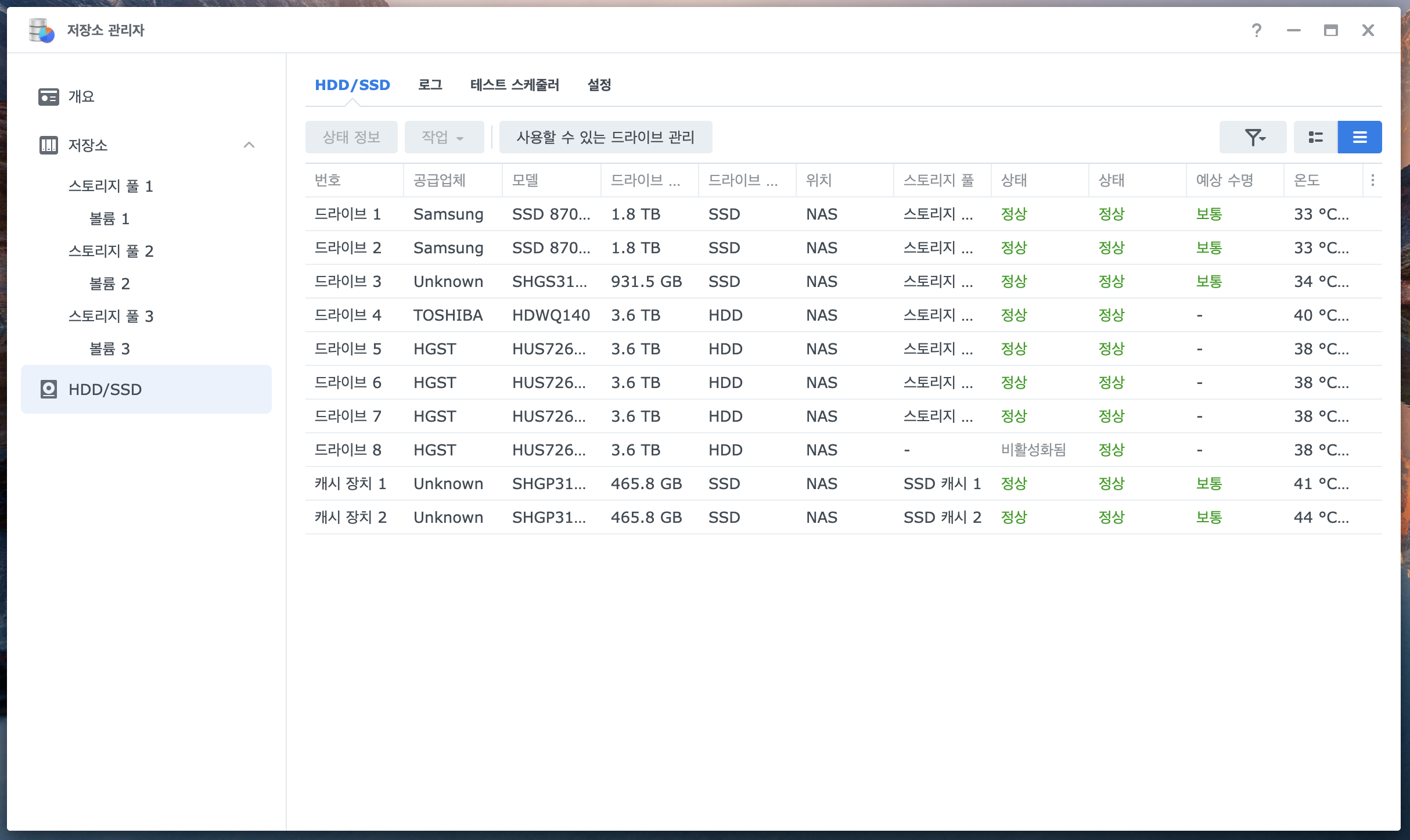 오늘은 Synology에서 드라이브 교체 기능을 사용해보려고 합니다.