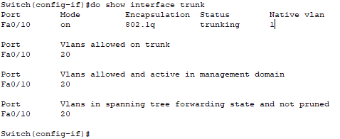 Switch(config-if)#switchport trunk allowed vlan 20