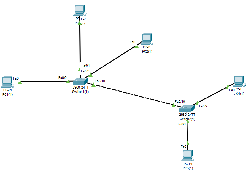 이제 그럼 VLAN10을 Fa0/1와 Fa0/3 VLAN20을 Fa0/2와 Fa0/4에 할당해보자