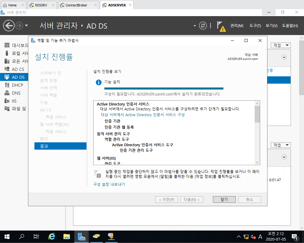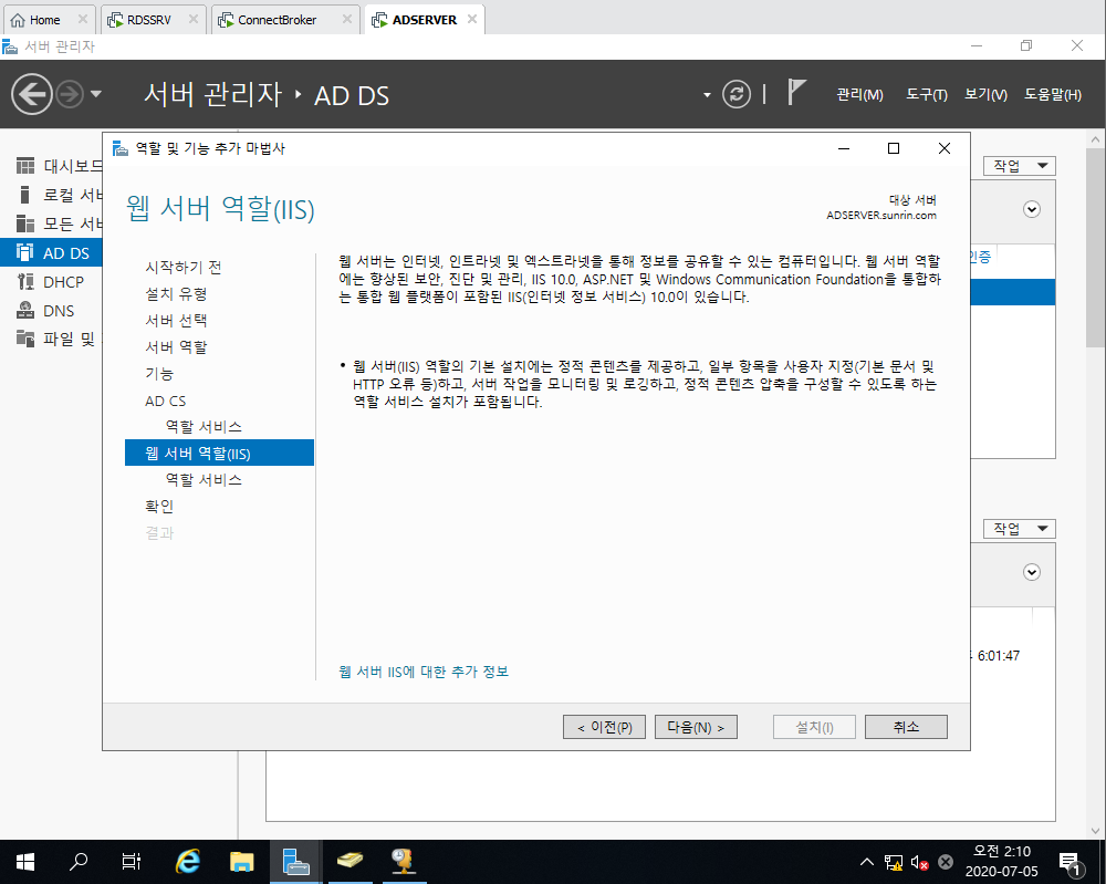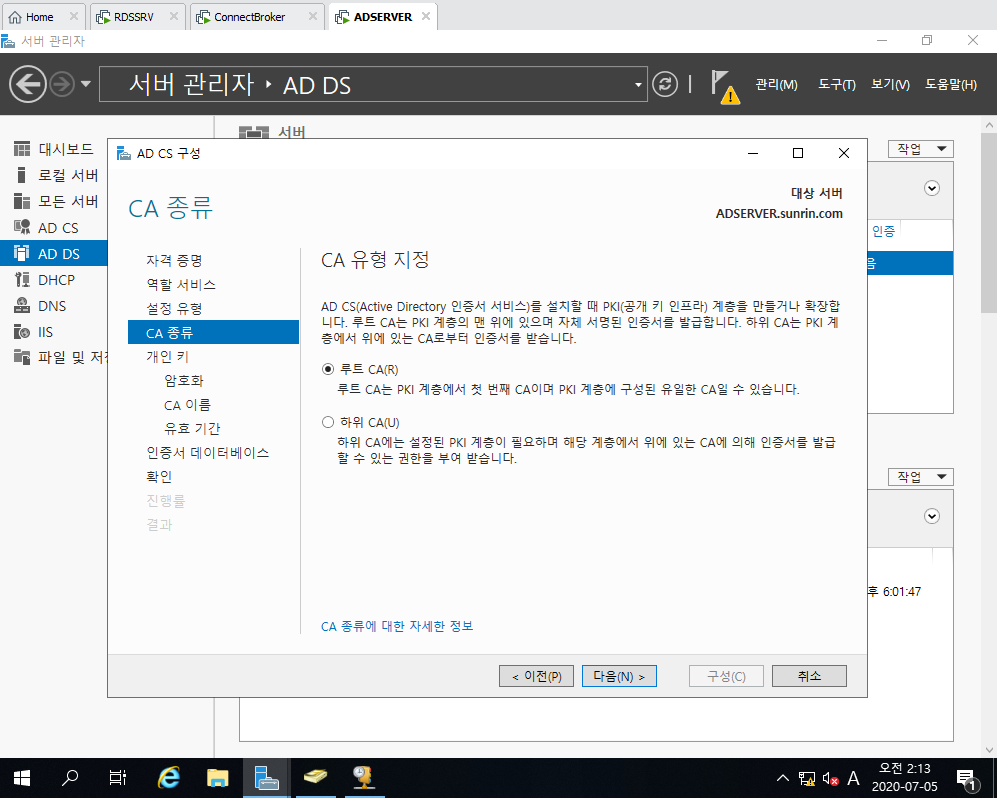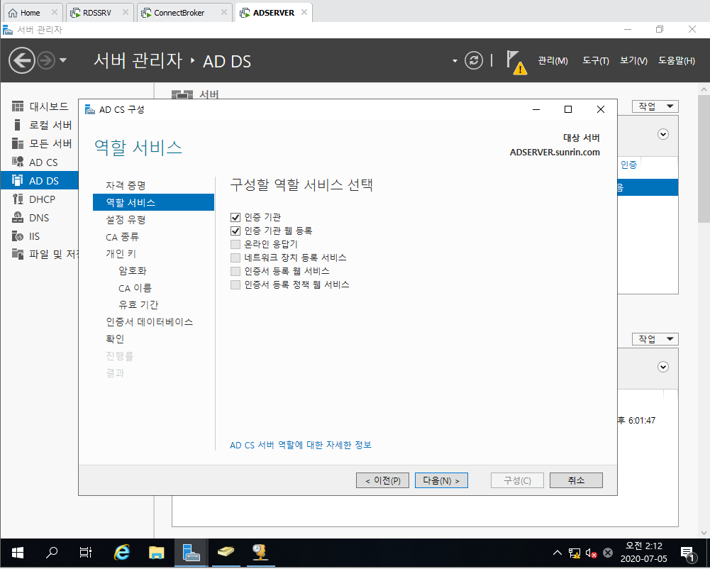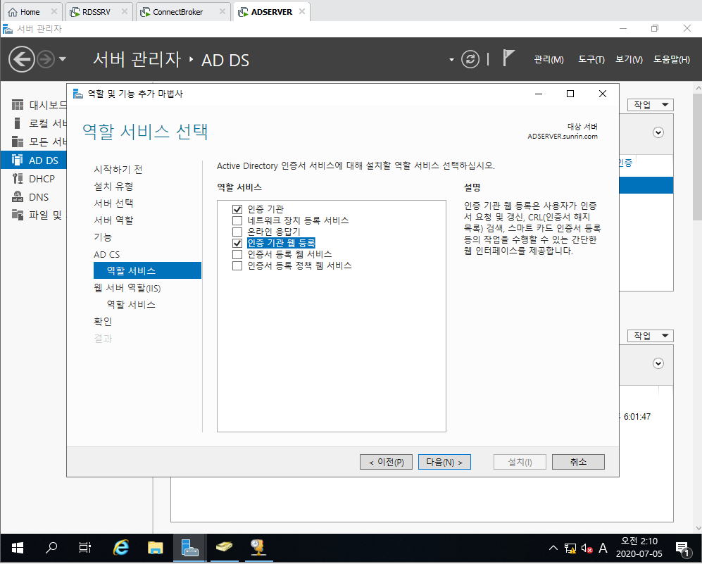 5. Active Directory 인증서 서비스 선택 및 설치
