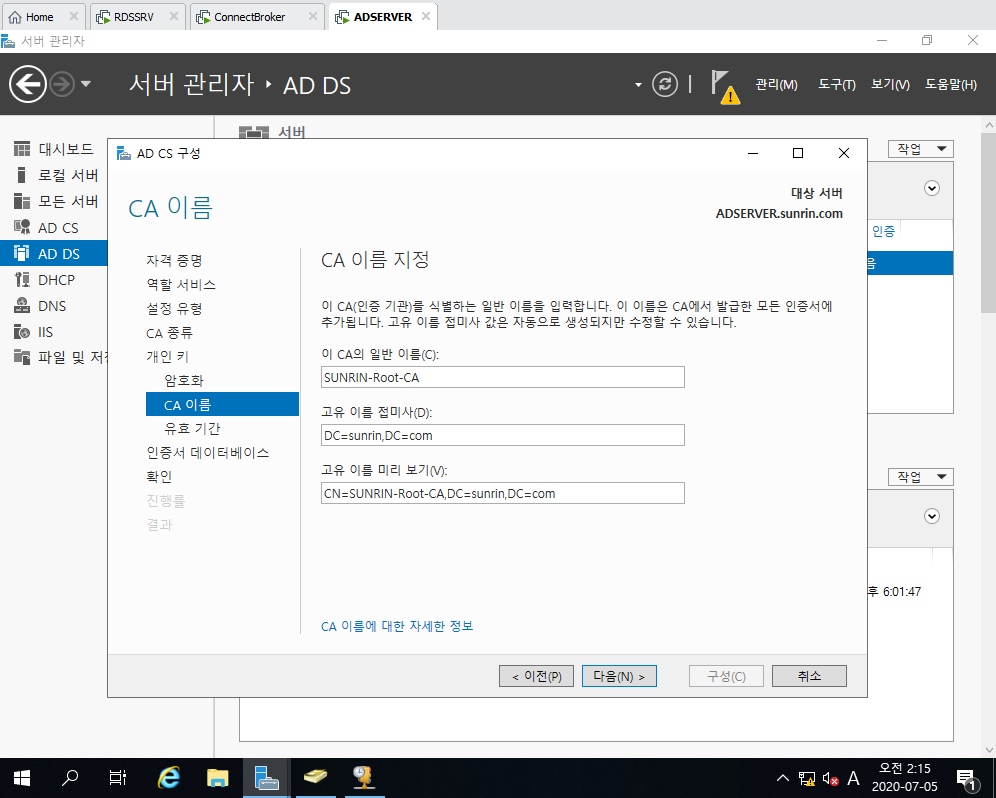 18. CA이름을 지정합니다. 예) SUNRIN-Root-CA