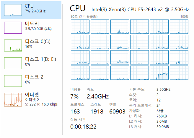제온 E5-2643v2 CPU가 설치된 것을 볼 수 있습니다.