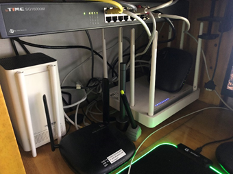 메인 룸의 네트워크 장비이다. 공유기는 총 3개를 사용 중이고 메인 룸에는 16포트 스위치가 설치 되어있다. 그리고 스위치에 포트들은 렌더링 데스크톱, 리눅스 서버 및 쓰고 있는 메인 데스크탑에 연결 되어있다. 메인 데스크톱에는 랜 카드를 추가로 장착하여 메인 서버로 데이터를 보내거나 인터넷을 사용할 때 대역폭을 충분하게 만들어주었다.
