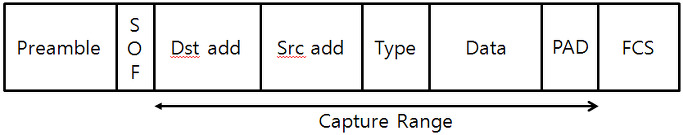 이더넷은 네트워크 계층으로부터 받은 패킷에 프레임의 처음을 나타내는 프리앰블과 목적지와 출발지를 나타내는 헤더, 비트 오류체크에 사용하는 FCS를 추가하여 프레임을 생성한다.