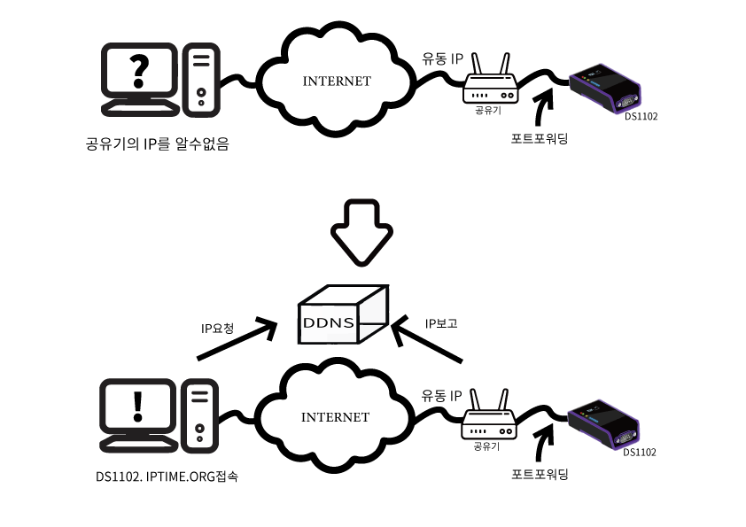 그래서 DDNS를 사용하여 IP주소가 변경되게되면 DNS에 IP를 바뀐 IP주소로 갱신해 주기때문에 IP주소가 변경되더라도 편리하게 사용이 가능하다.