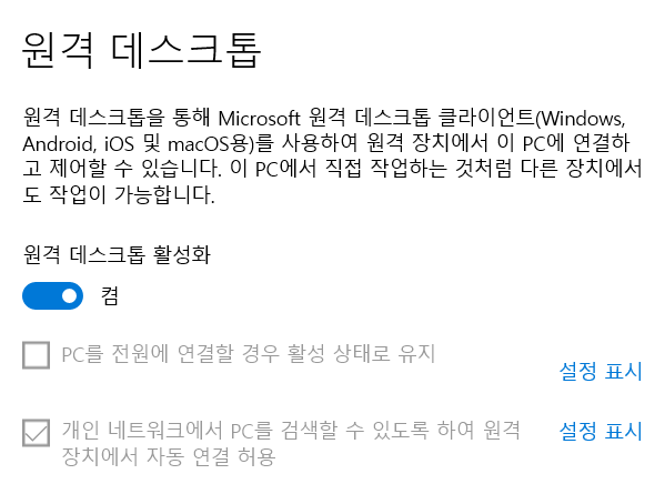 [Windows 10] 원격 데스크톱 사용하기 (RDP)