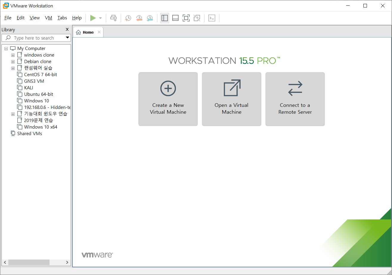 VMware를 실행시키면 화면에 바로 Create a New Virtual Machine 선택해주시면 됩니다.