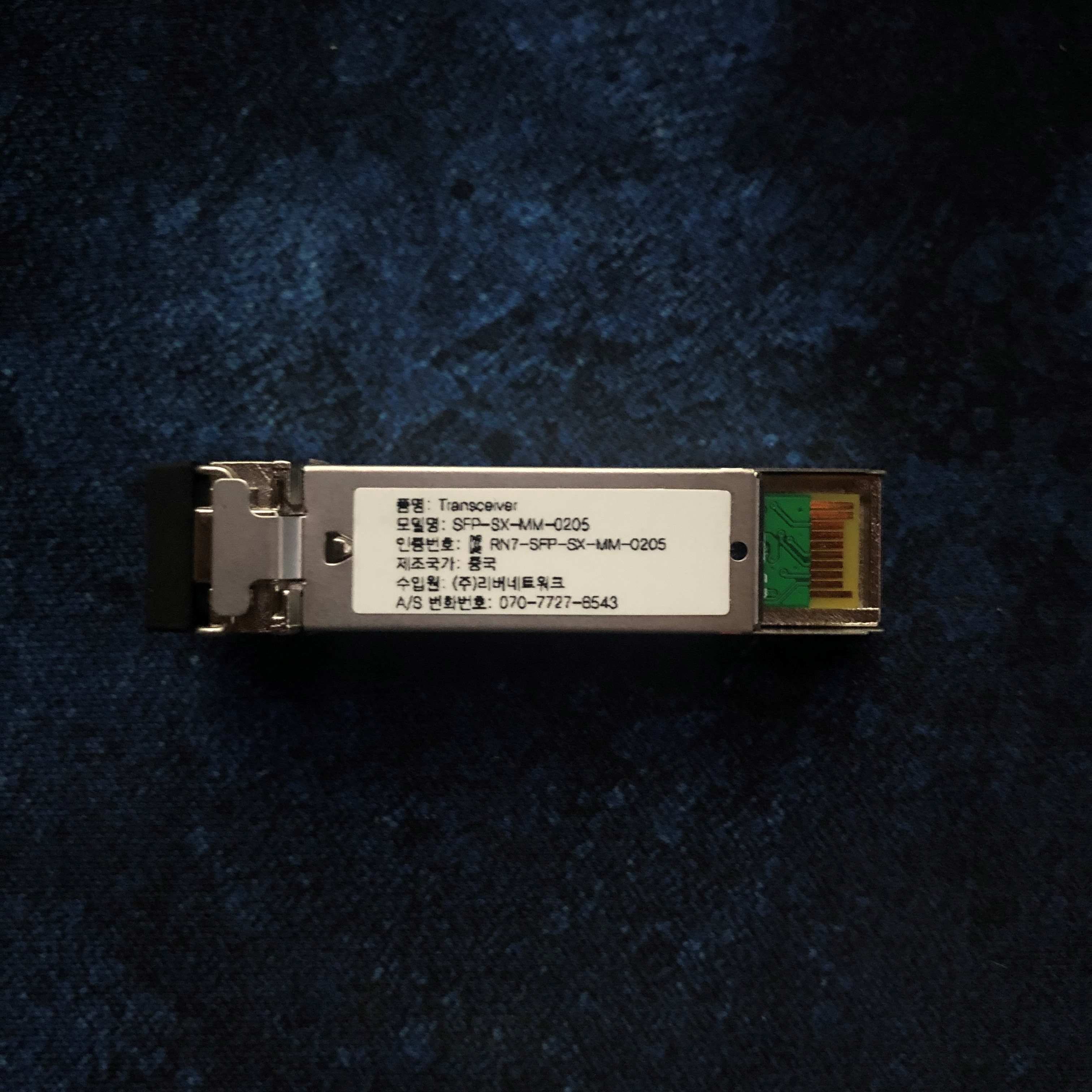 이제 실물을 보여드리겠습니다. SFP모듈은 이렇게 생겼습니다.