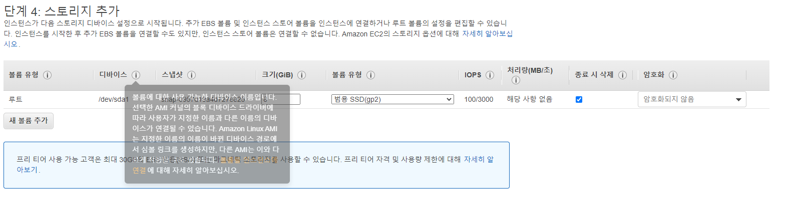 이제 스토리지 설정을 하는 창이 나옵니다. 저희는 기본 설정으로 진행하겠습니다.