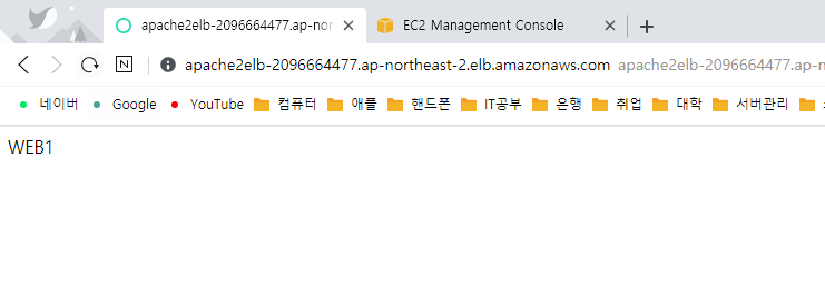 저는 보기 편하게 웹서버1에 WEB1 웹서버 2에 WEB2가 뜨도록 수정하겠습니다.