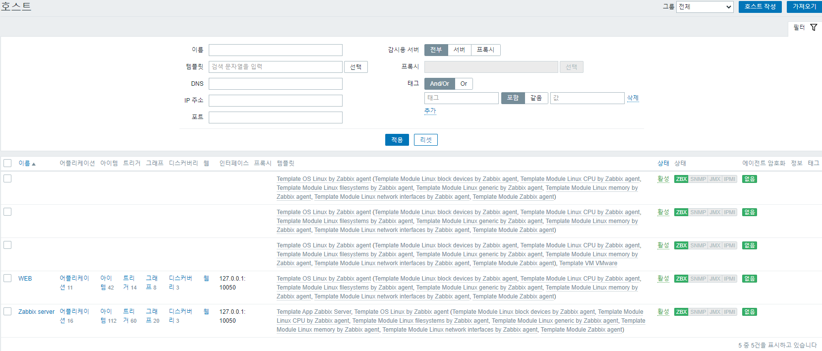 그룹을 선택하는 건 이미 만들어진 그룹에 넣거나 호스트 그룹을 만들어 적용시켜도 됩니다.