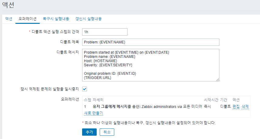 복구 시 실행내용에는 관계자 전원에게 통지로 설정해줍니다.
