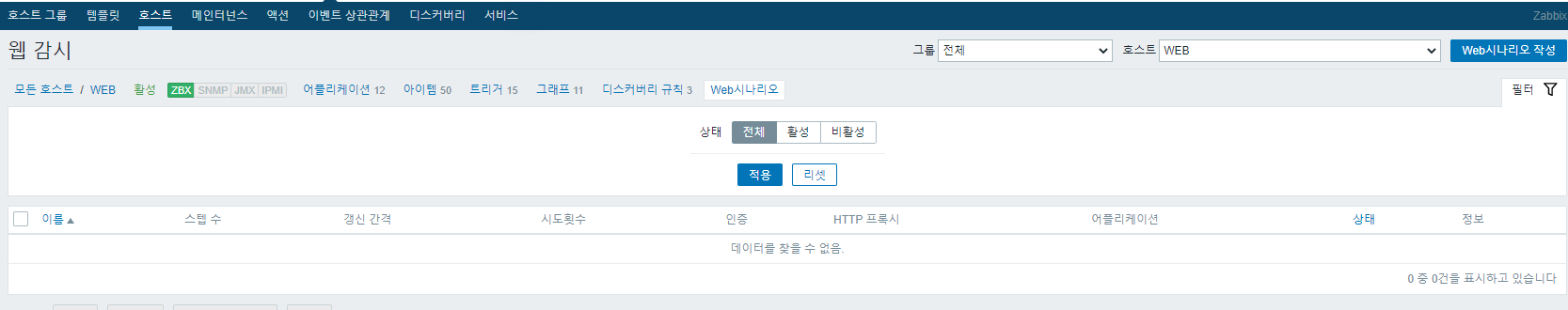 저는 웹서버 모니터링을 할 예정이므로 웹 시나리오를 작성해보도록 하겠습니다.
