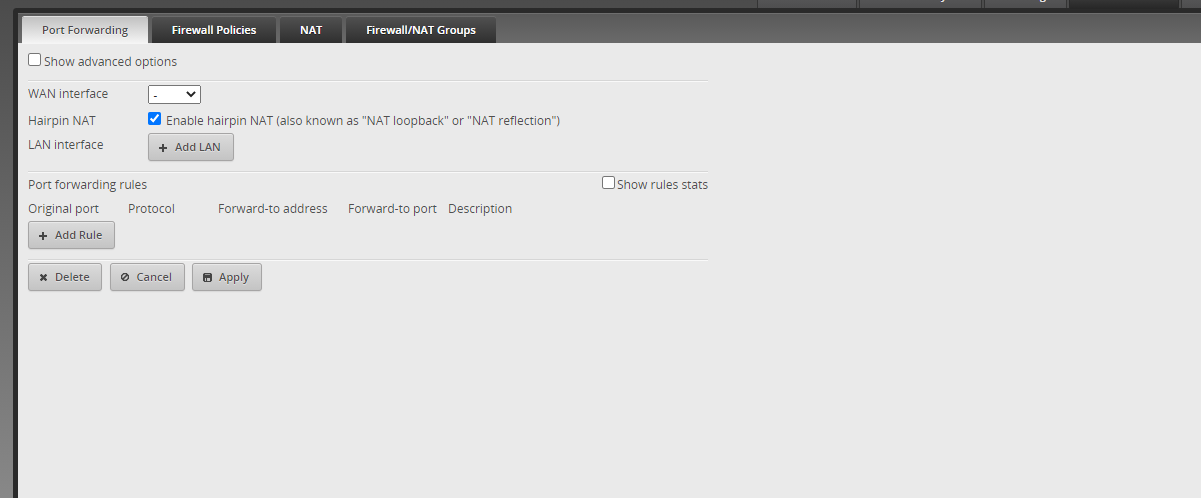 이렇게 인터페이스 설정을 했다면 이제 Port forwarding rules 설정을 해보도록 하겠습니다.