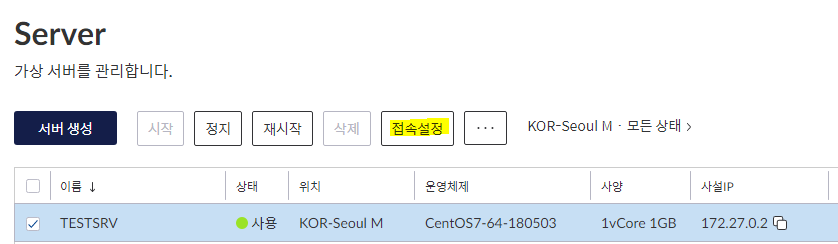 1. SSH 접속 할 서버를 선택 후 접속 설정을 눌러줍니다.